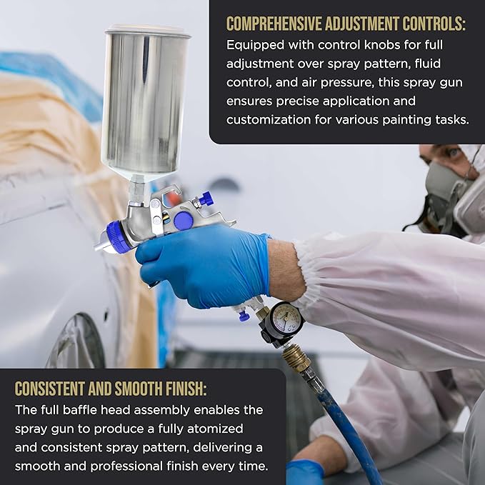 - Consistent & Smooth Finish – The full baffle head assembly delivers fully atomized, even spray patterns, ensuring a professional-grade finish every time. Perfect for achieving a showroom-quality shine with your car spray gun.