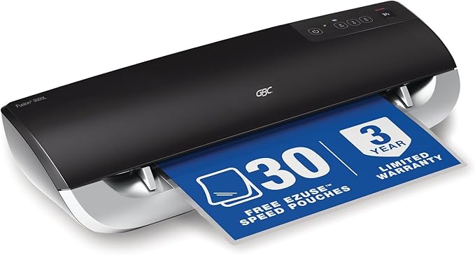 - WARRANTY & POUCHES INCLUDED – Laminator comes with an industry best 3 year warranty and 30 letter size EZUse Premium Speed Pouches, which seal on the longer side to reduce processing time by 22%.