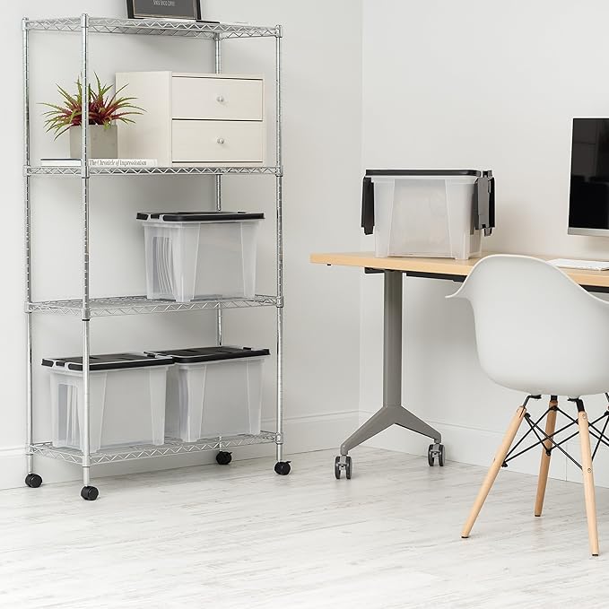 IRIS USA File Box File Organizer w/ Wing Lid for Letter/Legal File, Water Resistant Document Box, BPA-Free Plastic Storage Bin Organizer with Handles, Stackable, Nestable, Clear 18 Qt. 4Pack