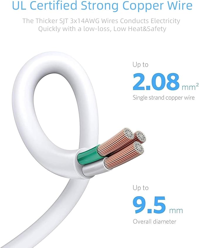 - Other Noticeble Advantages: FCC and ETL listed,UL certified 3-prong grounded plug power cord.,14AWG thicker 5 ft 3 prong power cords to avoid over-heating when using high-power electrical appliances,wear/shock resistant.The Velcro straps was provided to keep things tidy it when the cable is too long.The keyhole slots on the back of the power strip allow you to mount it on the wall or baseboard flexibly.