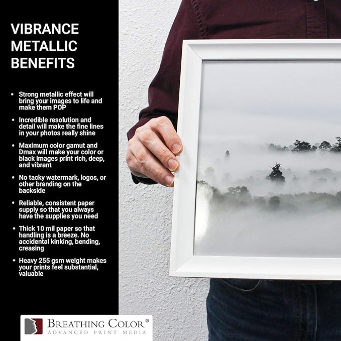 Vibrance Metallic Photo Printer Paper 10 mil 255 gsm Premium Photo Paper Sheets 17 x 22 inches 50 Sheets Works with All Inkjet Printers Including Professional Makes and Models Like Epson Canon HP