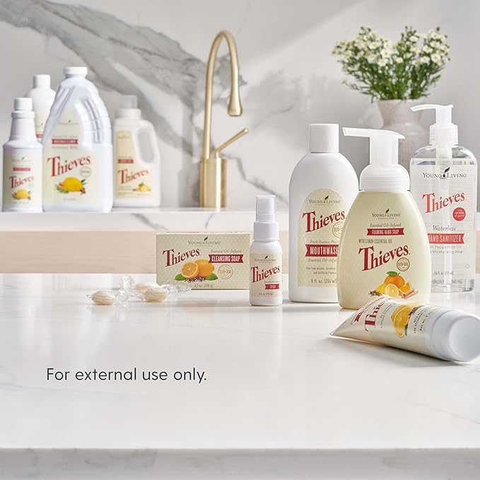 - Keep your hands germ-free with Thieves Waterless Hand Purifier, featuring a spicy-sweet aroma that everyone will love—perfect for home, office, or travel use.