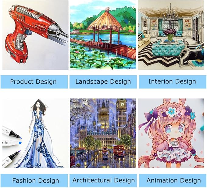 - 🎨 QUALITY ART MARKERS: The highly pigmented and vibrant markers are built to last without worrying about smudges, allowing you to color in at least 300 m worth of drawings and blend beautifully for added dimension to your artwork. The alcohol markers ideal for architectural design, advertising rendering, landscape, underlining, highlighting and other forms of comic design. Perfect gift idea for Christmas, Thanksgiving, school students, families, friends.
