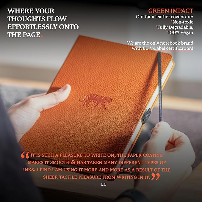 - HIGHEST-QUALITY WRITING PAPER: Dingbats Orange Tiger Medium A5 Notebook Journal has 192 pages-96 sheets of no bleed, smooth writing, Cream 100gsm, acid-free fountain-pen friendly, perforated squared paper in a flat lay design