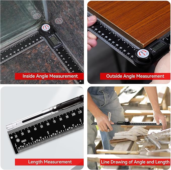 - HIGH ACCURACY -- Accuracy of this protractor is ±0.3 degree. It is a good choice for most projects like woodworking, crown molding and daily use. Folded length: about 7.5 inch/220mm.Total length 400mm.