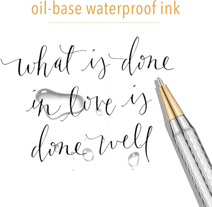 Unibene Slim Metallic Retractable Ballpoint Pens - Carved Chrome & Gold, Nice Gift for Business Office Students Teachers Wedding Christmas, Medium Point(1 mm) 6 Pack-Black ink