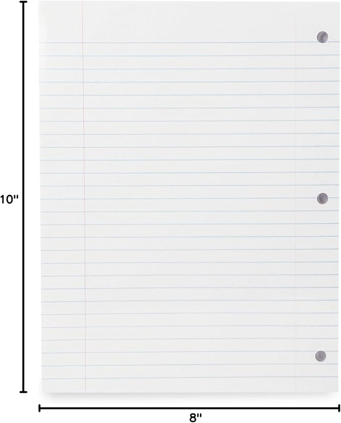 - 600 Sheets (6 packs of 100 sheets) of loose leaf filler paper for 3 ring binder - full cases also available!