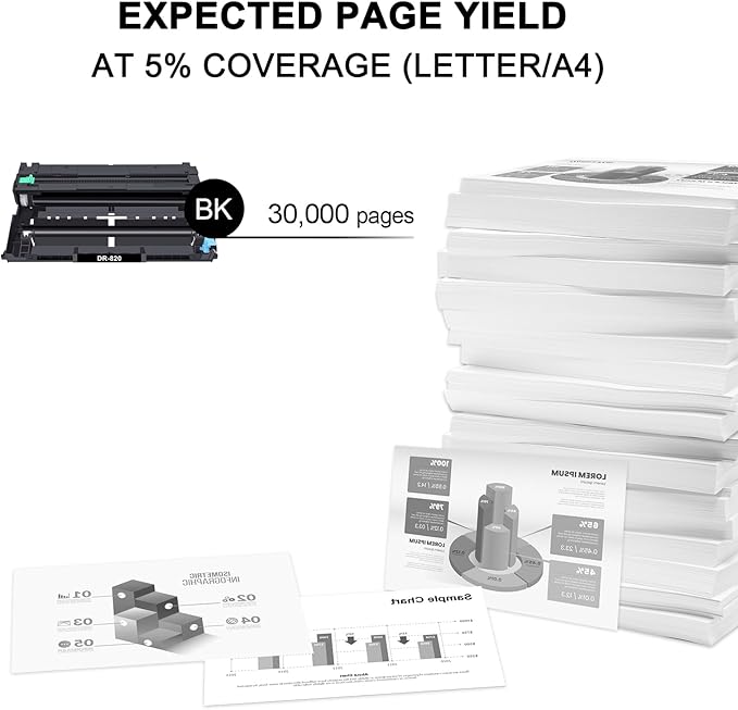 - Drum Uint Page Yield: 30,000 pages based on 5% coverage (Letter/A4)