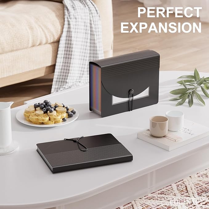 - LARGE CAPACITY - 12 pockets, organising all in one place, expand and shrink with growing files flexibly. Closed bottom makes papers stay in the proper slot