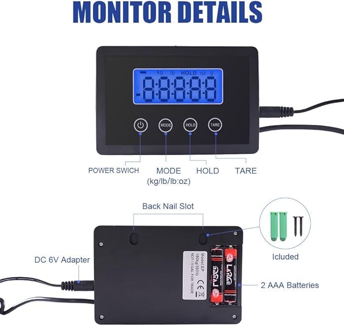 - STAINLESS STEEL PLATFORM SCALE: Sleek design large platform and screen with long cable ensures that you can put large objects on the scale and still see the reading. Two back nail slots allow you to mount the screen on the wall.