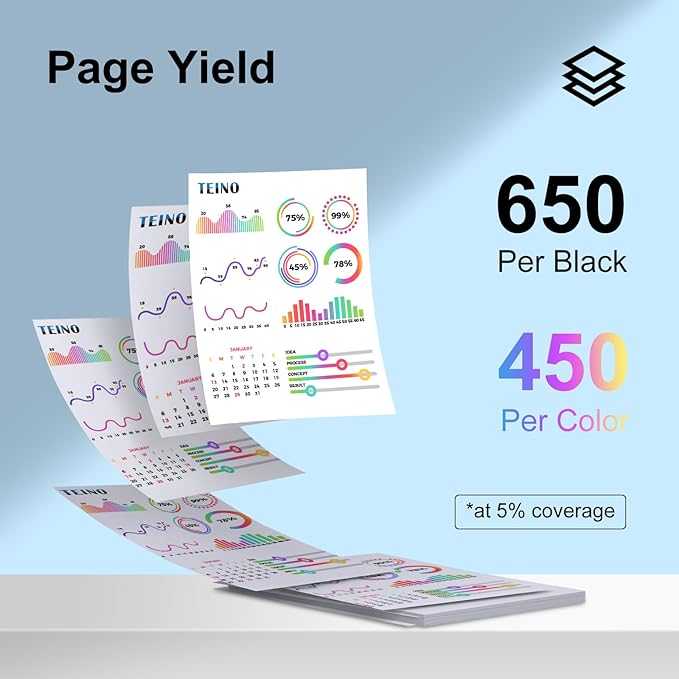 - TEINO ink cartridges display ink level real-time, deliver crisp, clear images and text. An ideal choice for home, office, school users looking for professional quality printing