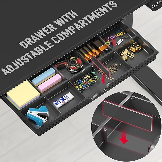 - Integrated Storage Drawer: Includes a built-in drawer to keep office supplies and personal items within reach, maintaining a clutter-free environment conducive to focus and efficiency.