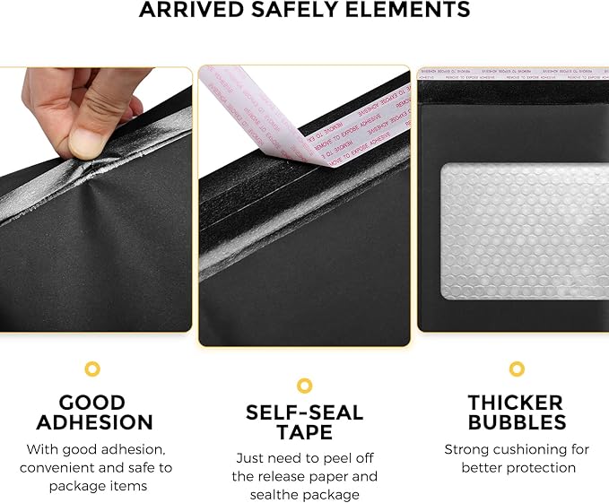 - 【Simple Peel & Seal 】Simply peel and fold over to seal each package safely and securely.Bubble envelopes are equipped with a strong self-sealing adhesive strip that cannot be easily torn apart and tamper-resistant.Moreover,the smooth surface of the paddeds mailers can be written, labelled and stamped.