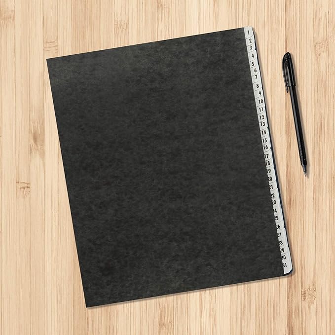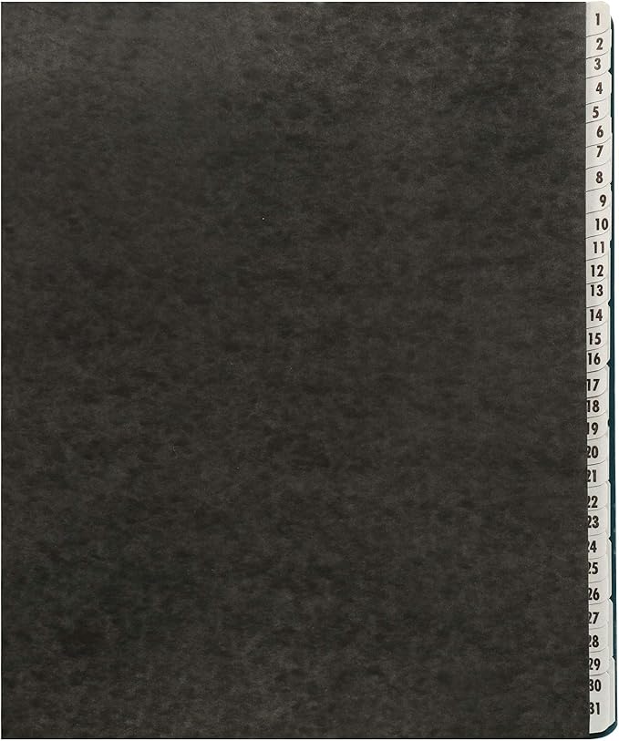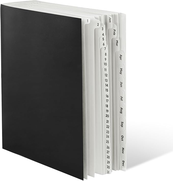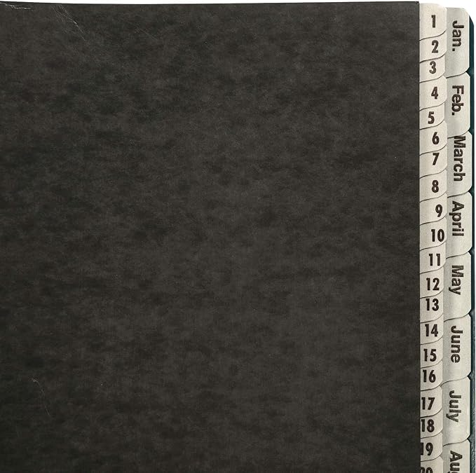 - Daily/monthly indexing: 43 dividers with preprinted tabs labeled 1-31 and Jan-Dec