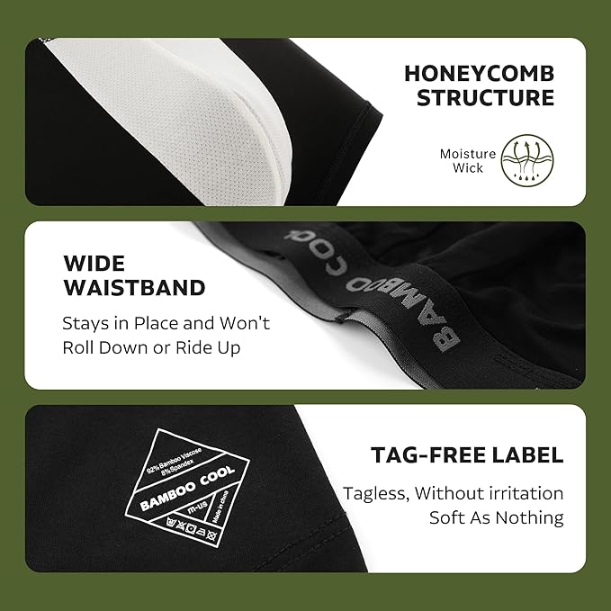 • FEATURES: The inside pouch adopts a honeycomb structure, made of raw bamboo viscose material, and the non-stained white bottom crotch is comfortable, and it is dry all day