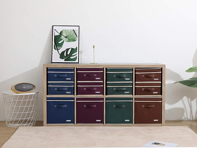 YueYue Foldable Fabric Closet Organizer Bins Box Storage - 4 Pack 12.4 X 12 X 6.7 Inch Storage Bins With Lids 4 Dark Color Boxes - Bins Storage Box Cloth Basket Pack Lid