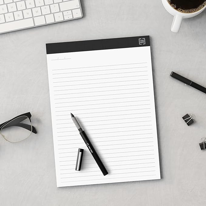 TRU RED Staples Notepads, 8.5-inch x 11.75-inch, Wide Ruled, White, 50 Sheets/Pad, 12 Pads/Pack (TR57382)