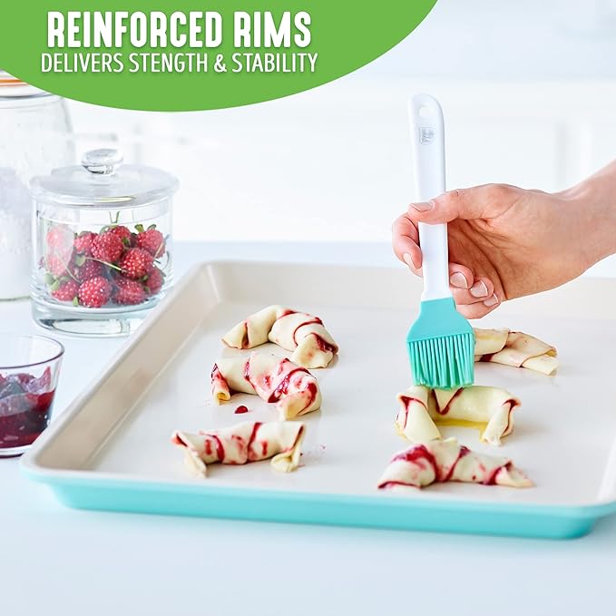GreenLife Bakeware Healthy Ceramic Nonstick, 4 Piece Toaster Oven Baking Set with Cookie Sheet Muffin and Cake Pan, PFAS-Free, Turquoise