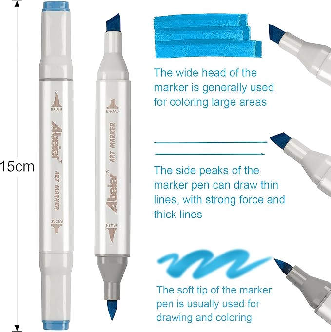 - Double Tip Brush & Chisel Alcohol Art Markers: Each Alcohol based Brush marker has a Dual tip marker design, choose the brush tip for sweeping, details Outline, choose chisel tip to quickly color a large area. Whether it is smearing on a large area or portraying fine lines, it can do well.