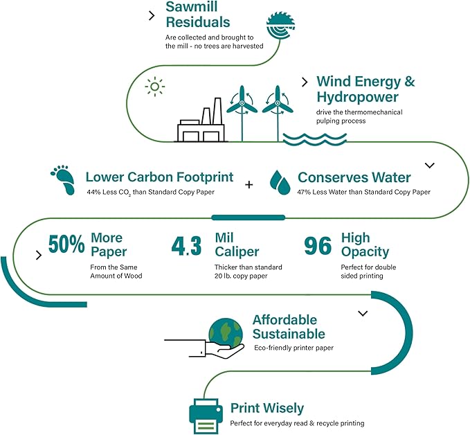 Elementree Sustainable Printer Paper Case 8.5" x 11" – Made from Sawmill Waste – 20 lb Copy & Multipurpose Computer Paper – 2500 Sheets – Made in the USA - Printer & Copier Compatible (00918C)