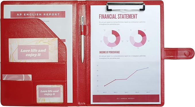- Perfect Size and Compatibility: Measuring 9.84"(W)X12.6"(L)", this folder comfortably holds A4 letter-size papers or writing pads, fitting easily into tablet cases, large handbags, or backpacks for everyday convenience. (paper and pen are Not included)
