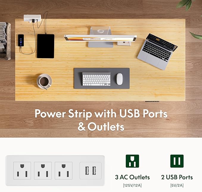 - REMOVABLE DESKTOP POWER OUTLET: To ensure you can conveniently charge your electronic devices, the desktop is equipped with 3 power outlets and 2 USB charging ports. It can be clipped to the back or side of your desk to meet your needs for different locations. Tidy up your workspace with a cable management device.
