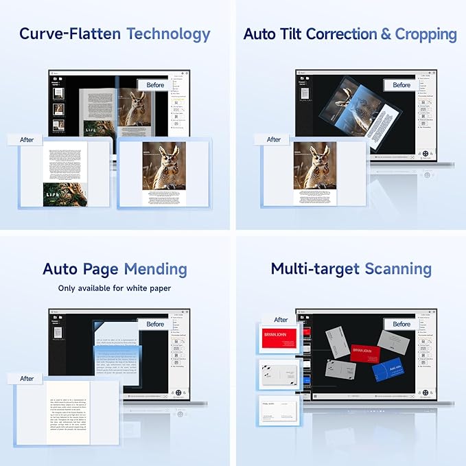 - High Resolution & AI Tech: CMOS 13MP (4160*3120, A4≈340 AND A3≈245 DPI) camera. Smart Paging and Auto Cropping; Combine Sides; Stamp Mode; and Multiple Color Modes