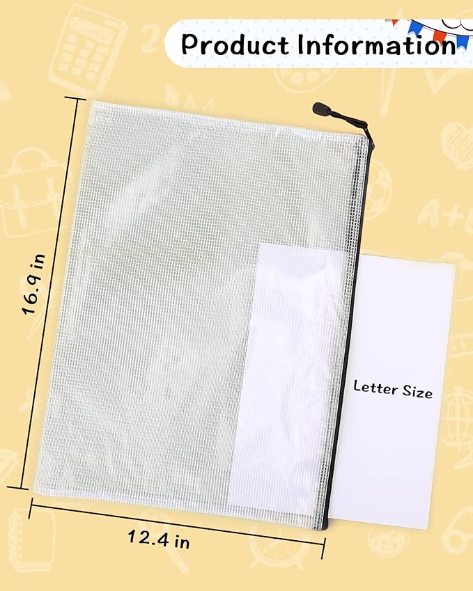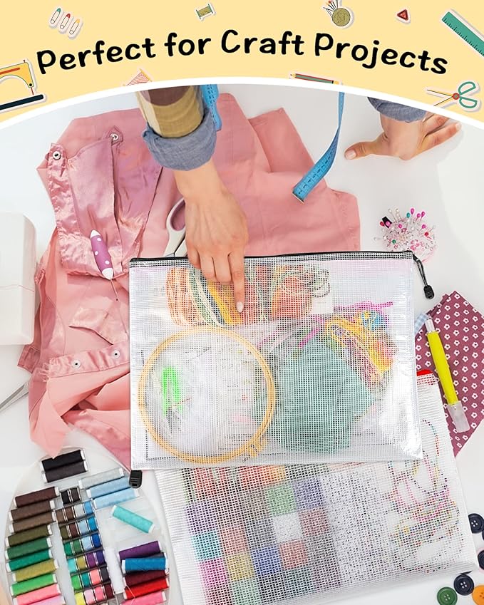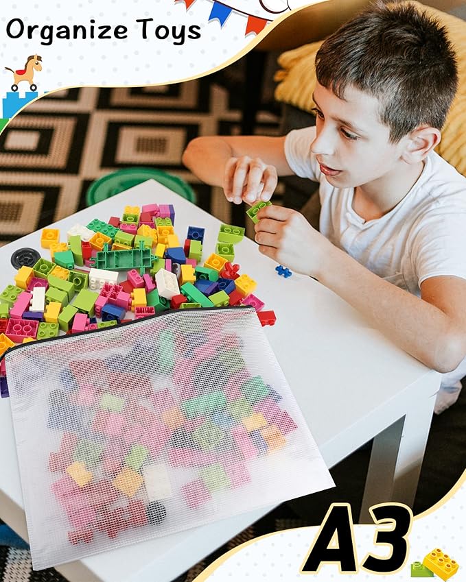 Umriox 5PCS A3 Zipper Bags, Extra Thick Mesh Zipper Pouch, Large Storage Bags, Zipper Pouches for Office Supplies, Puzzles Organizing Storage