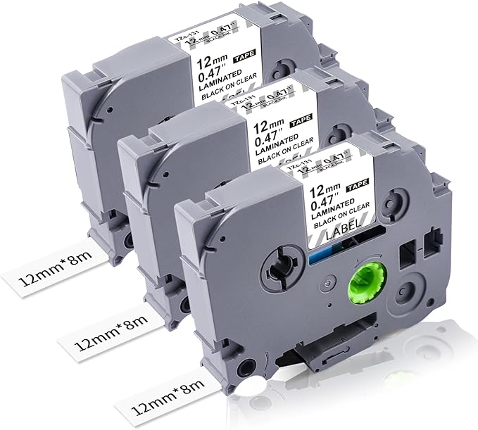 - What You Get: 3 packs Lonitul 12mm .47 laminated clear TZ tapes compatible with Brother P Touch label maker tapes clear TZe-131 black on clear, 1/2 Inch x 26.2 Feet(12mm x 8m). Please check if your label maker matches the 12mm TZe label tape.