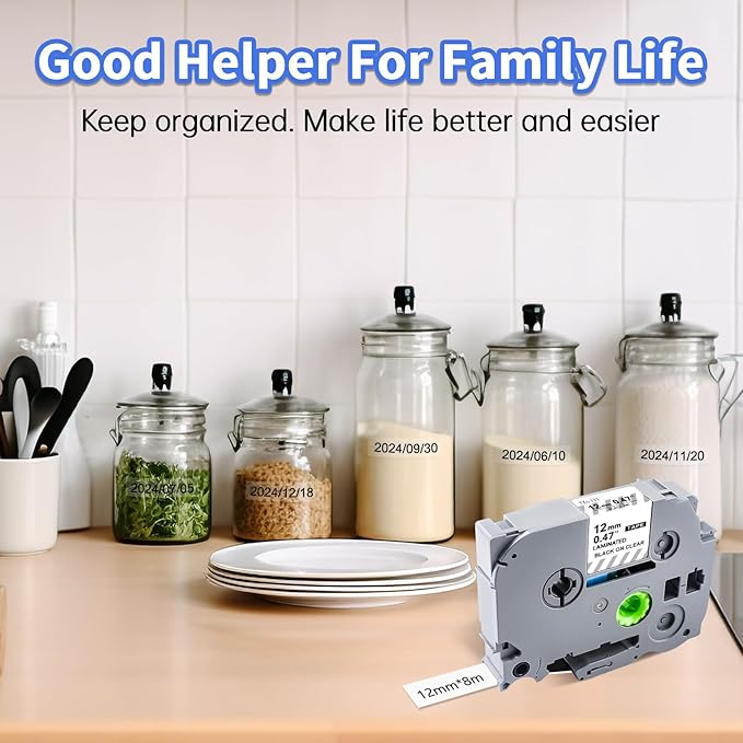 - Lasting & Practical Laminated Tape: Compatible with Brother TZ tape 12mm 0.47 laminated clear is enduring, self-adhesive and print clearly. Resistant to water, oil, fade, abrasion, chemical, heat and cold.