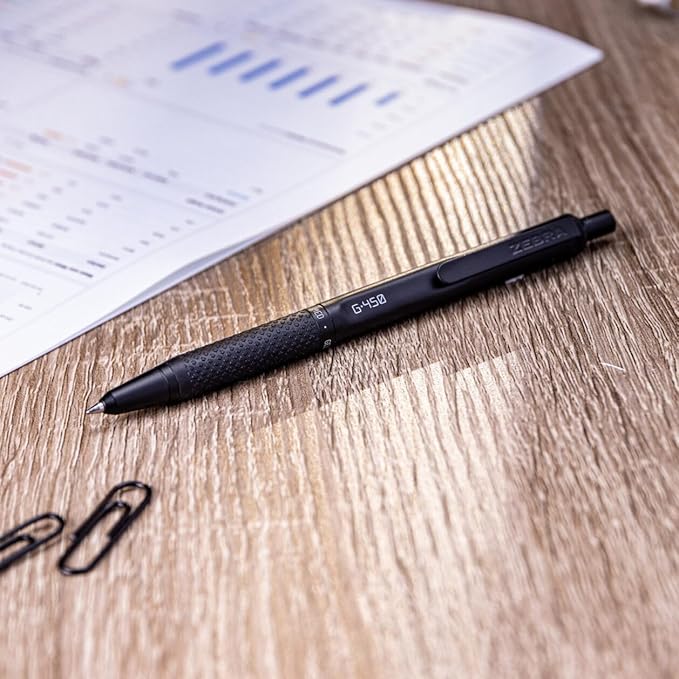 Zebra Pen G-450 Gel Pen 1-Pack, Black Ink, 0.7mm Medium Point, Black Brass Barrel, Textured Rubber Grip, Secure Metal Clip, Refillable (49511)