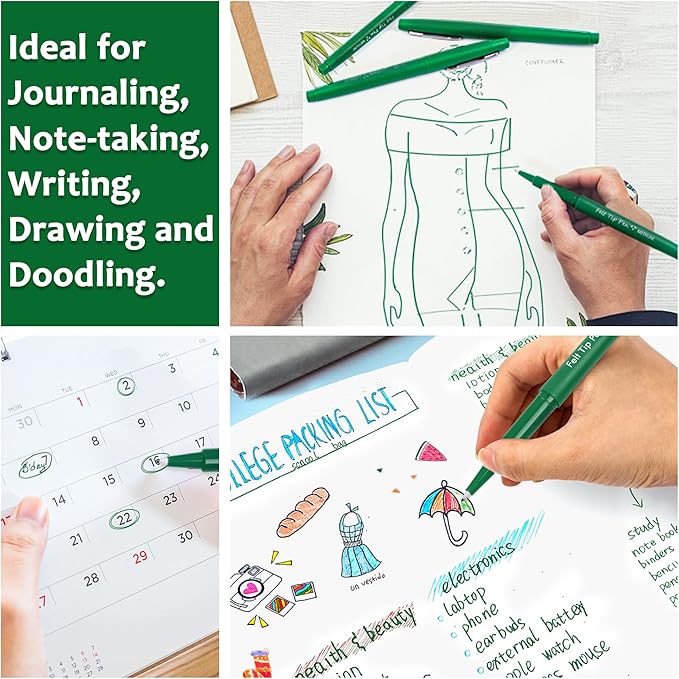 - GREEN FELT TIP PENS: Lelix felt tip pens set has 15 green pens. Versatile felt tip and rich ink can create eye-catching, vibrant impression.