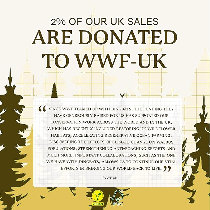 - THE ONLY VEGAN CERTIFIED NOTEBOOK: Made from recyclable materials and purely FSC certified paper, this handsome plain notebook is 100% Vegan Certified! We wear this badge with honour, and hope you join our pledge to make the environment a better place, one Dingbats pocket notebook at a time! For its UK sales, Dingbats* Notebooks Ltd donates 2% of its revenue to WWF-UK, a charity registered in England and Wales (1081247)