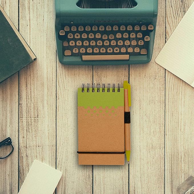 DISCOUNT PROMOS 10 Recyclable Spiral Small Notebooks Pack - 60 Lined Pages - Lime Green