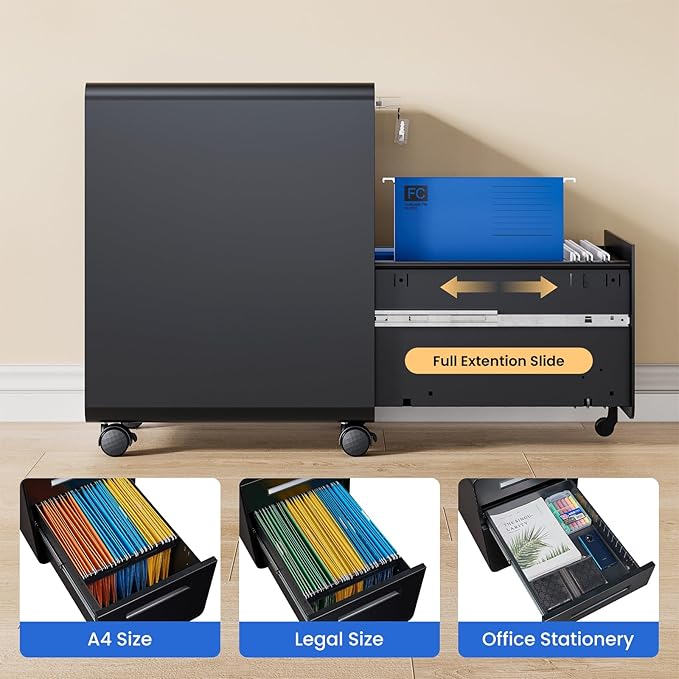 - 【Rolling Fill Cabinet 】: Equipped with 2 lockable casters + 2 x 360° swivel casters + 1x anti-tilt wheel, you can move it easily and safely. 360° swivel casters go to any direction easily, while lockable casters offer braking and the center support wheel prevents tipping.