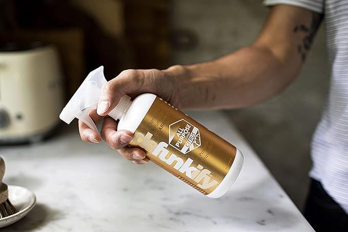 - 𝗦𝗽𝗿𝗮𝘆 𝘁𝗵𝗲 𝗙𝘂𝗻𝗸 𝗢𝗳𝗳!' 𝗚𝘂𝗮𝗿𝗮𝗻𝘁𝗲𝗲: Defunkify's All Purpose Cleaner is a concentrated degreaser that makes quick work of spills, grime & residue left behind by other surface cleaners. As a lightly scented 'Citrus' essential oil multi surface cleaner, w/ all natural odor & set-in stain remover ingredients, 𝘆𝗼𝘂𝗿 𝗵𝗮𝗿𝗱 𝘀𝘂𝗿𝗳𝗮𝗰𝗲𝘀 𝘄𝗶𝗹𝗹 𝗯𝗲 𝗹𝗼𝗼𝗸𝗶𝗻𝗴 & 𝘀𝗺𝗲𝗹𝗹𝗶𝗻𝗴 𝗹𝗶𝗸𝗲 𝗻𝗲𝘄 𝘄𝗶𝘁𝗵 𝗮 𝘀𝗶𝗻𝗴𝗹𝗲 𝗮𝗽𝗽𝗹𝗶𝗰𝗮𝘁𝗶𝗼𝗻, 𝗴𝘂𝗮𝗿𝗮𝗻𝘁𝗲𝗲𝗱.