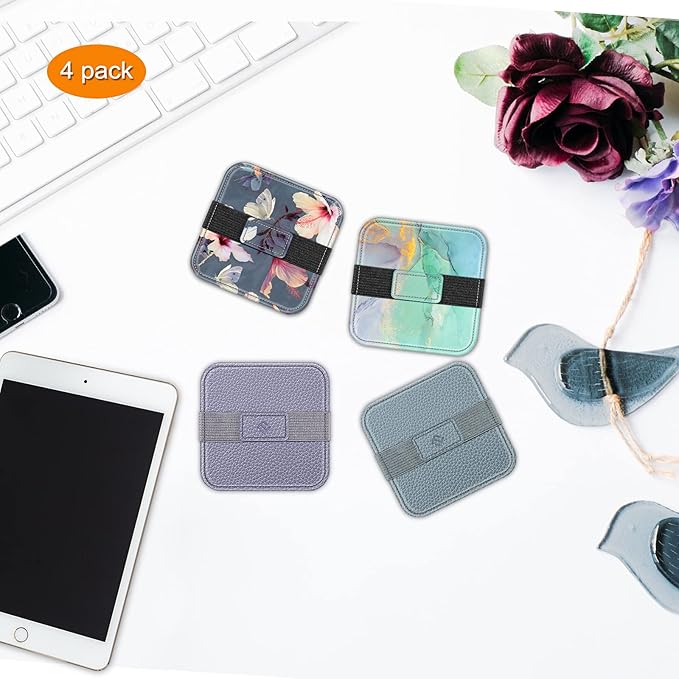 Fintie Screen Cleaning Pad, [4 Pack] Soft Cloth Wipes Screen Cleaner with Elastic Strap for iPad, iPhone, MacBook, Tablets, Laptop (Blooming Hibiscus)