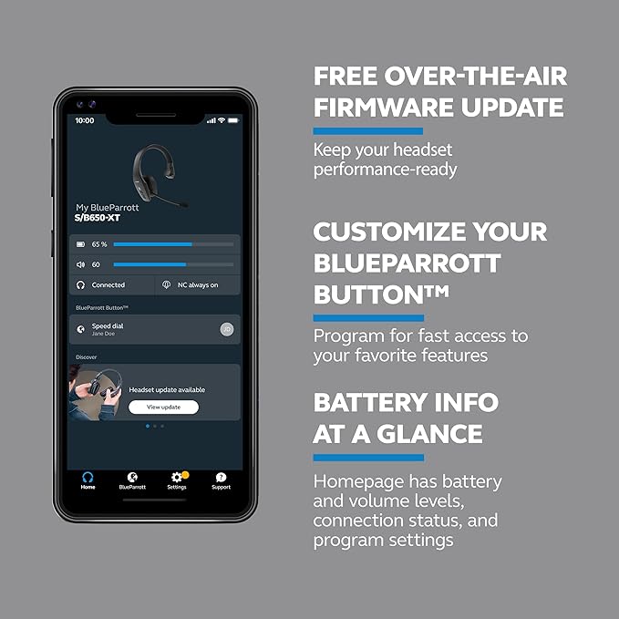 - Ultra Durable Design: Wireless headset with mic for work built with IP54-rated protection against dust and moisture; BlueParrott Button offers fast access to features like mute, speed dial, and more