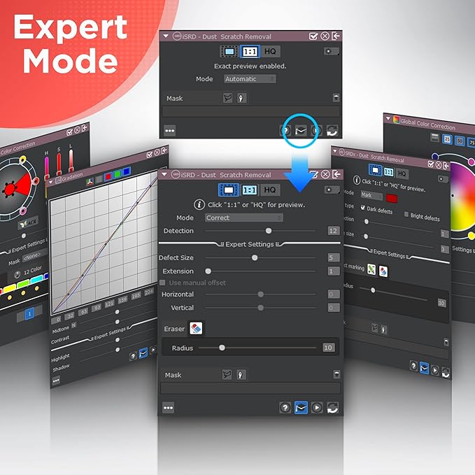 - [New Algorithms] SilverFast 9 with new algorithms eliminated the boundaries of film and digital image; successfully optimized the image result by built-in infrared, iSRD, HDRi, 16-bit Histogram, Multi-Exposure or NegaFix.