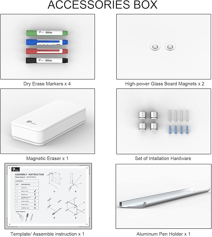 TOWON 47 x 35 Inch Glass Dry Erase Board, Magnetic Whiteboard Calendar, Monthly Planner Set, White
