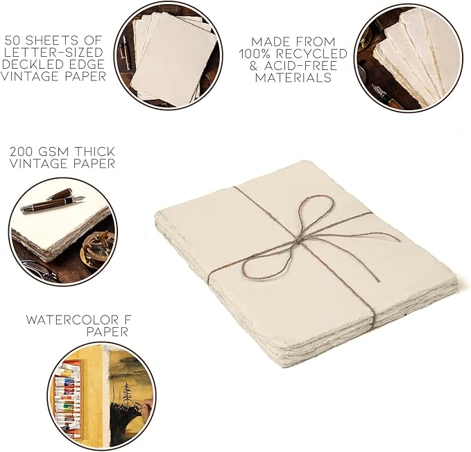 Watercolor Paper | Letter Sized Vintage Paper 8.5 x 11 Inches | 200 GSM Handmade Paper | 50 Sheets of Recycled Cotton Papers, Perfect for Any Medium, Blank Water Color Papers, Antique Paper