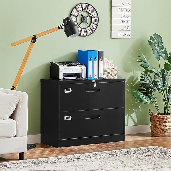 Letaya Metal Lateral File Cabinets with Lock,2 Drawer Steel Wide Filing Organization Storage Cabinets,Home Office Furniture for Hanging Files Letter/Legal/F4/A4 Size (Blcak-2 Drawer)