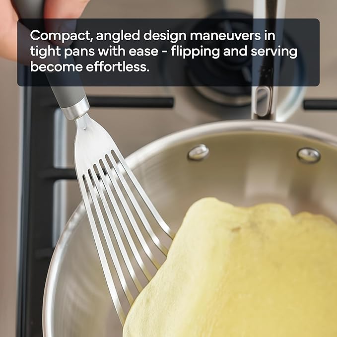 - PROFESSIONAL-GRADE FOR HOME COOKS: Meticulously crafted from premium material for unparalleled durability and resilience to high temperatures without getting damaged. Durable enough for restaurants, but designed to make flipping while frying, sautéing, and grilling, at home easier than ever before.