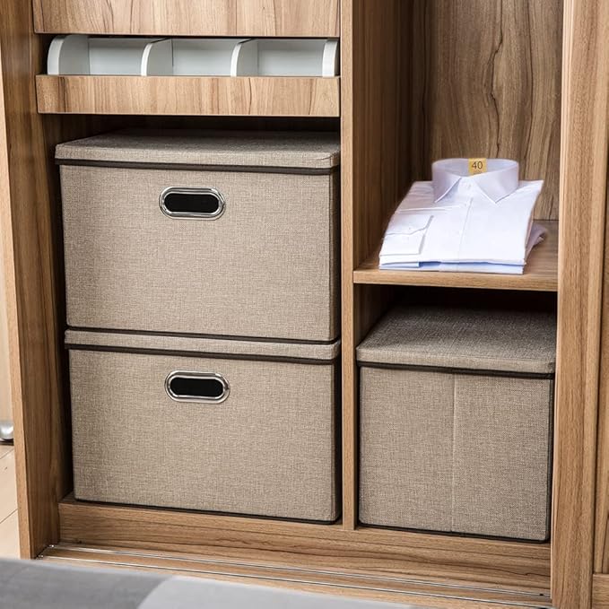 - 【Fashionable Bins】Designed to match interior decor and style in any room in the home or office. Enjoy the relaxing ambiance of the soft khaki and natural brown neutral color scheme.
