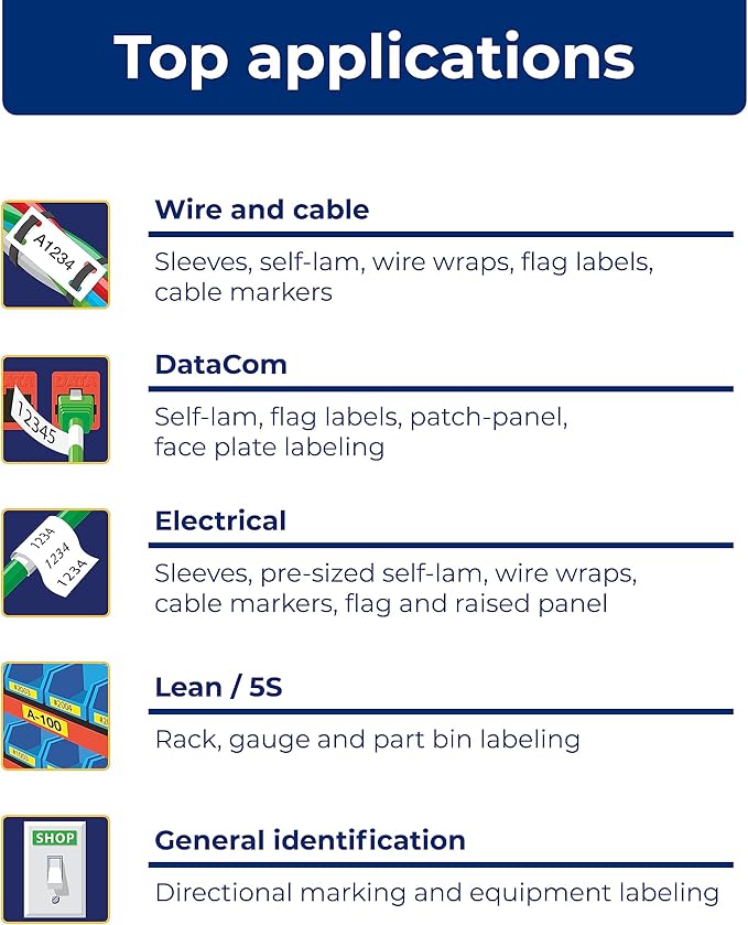 - Create custom labels from your phone’s familiar keyboard via ultra strong BLE Bluetooth technology