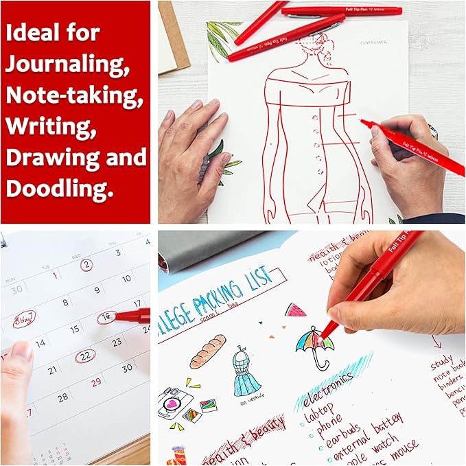 - UNLIMITED USES: Lelix felt tip pens are ideal for jouraling, writing, note taking, planner, doodling. Also great as school and teacher supplies for drawing lines, graphs, tables, and equation. The most suitable choice for kids and adults, students and teachers.