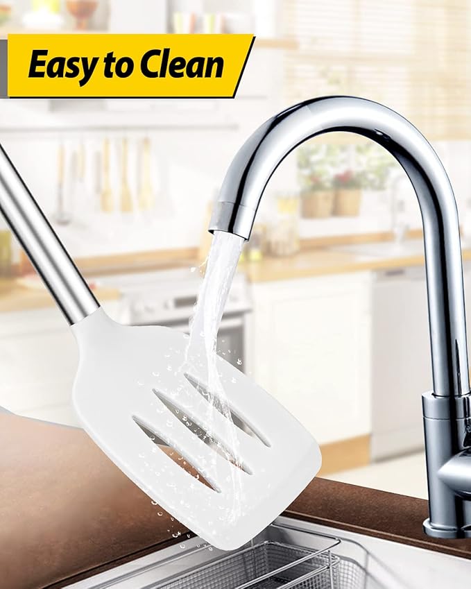 - More Safe and Healthy : Our silicone spatulas are made of food-grade silicone, free of BPA;Even at high temperatures, there is no need to worry about melting or deforming;And the soft silicone head won't scratch the coating, it can better protect your pot