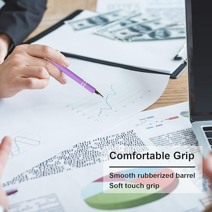 Ballpoint Pen with Stylus Tip, Soft Touch Click Metal Pen, 1.0mm Medium Point, Black Ink, 12 Count(Purple)