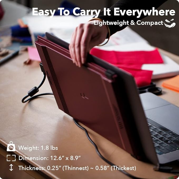 New Mobile Pixels 2024 Duex Max Portable Monitor, 14.1" FHD 1080P IPS Laptop Screen Extender, USB A/USB C Plug and Play Auto Rotated Laptop Monitor, Windows/Mac/Android/Switch Compatible (Rio Rouge)
