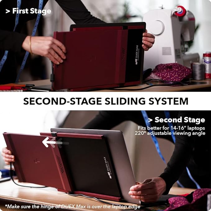 - 【Super Light Weight and Versatile】This laptop monitor is made of a ultra slim 0.35" IPS pannel and the weight of the whole monitor is only 1.7lbs.DUEX Max offers you true mobility with the most durable ABS and aluminum materials. Travel monitor 14.1" is more suitable for 14"-17" laptops, designed to withstand the wear and tear of carrying a laptop.With Duex Max monitor,you can have two screens anywhere you go!Perfect for travel, play outside and anywhere.